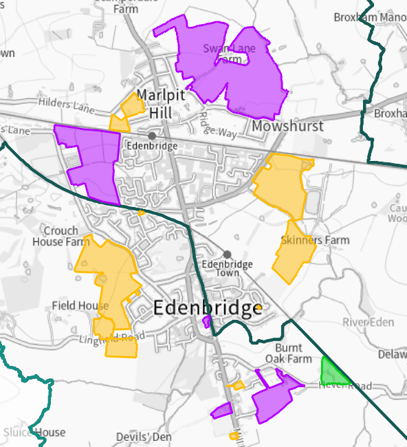 The 2042 local plan showing 2136 units for Edenbridge which is a 39% increase on the last draft plan. However, that is not the full story as it does not show all the sites, including those already with planning permission. The true number is 2801. This will double the size of the population of Edenbridge.
